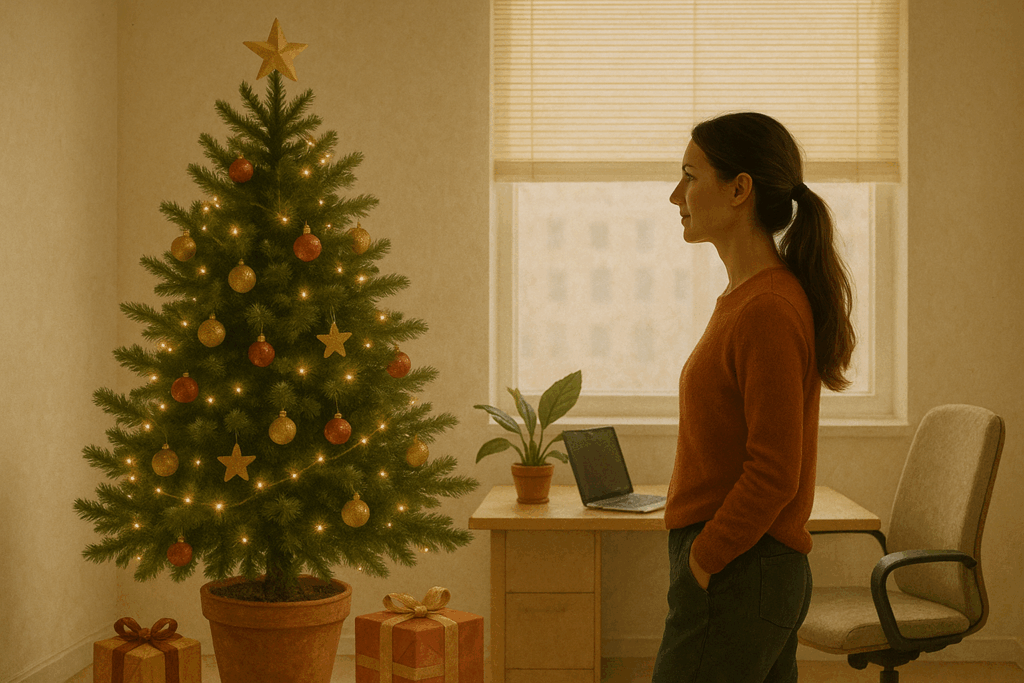 Un sapin décoré, c’est une expérience sensorielle complète : il transforme l’espace de travail en un lieu où le corps et l’esprit peuvent respirer à nouveau.